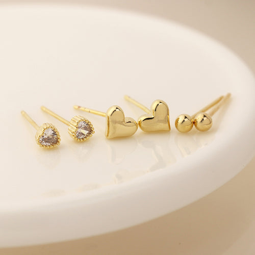 Set o Dri Clustdlysau Styd - Calonnau a Styds | Triple Stud Earring Set - Hearts & Studs