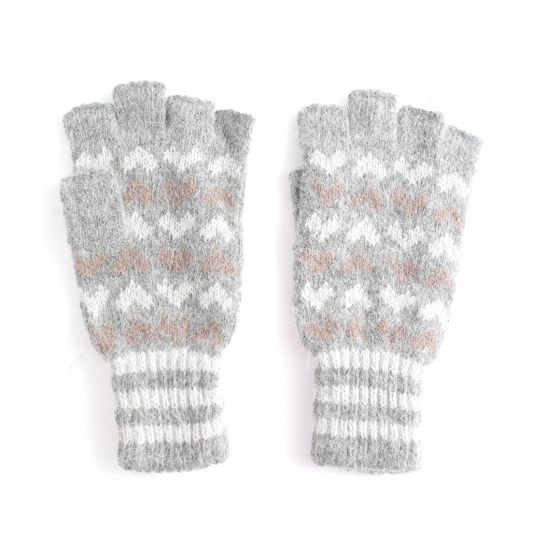 Finger-less gloves with a gorgeous geometric pattern that adds a touch of style to cold winter days. Made from a luxurious blend of wool and angora for wonderful warmth, they feel soft, lightweight and comfortable to wear. Perfect for winter walks, shopping or everyday cosiness.