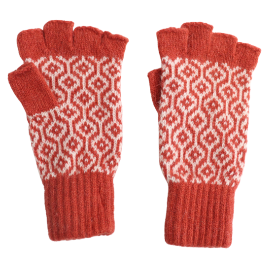 Finger-less gloves with a gorgeous geometric pattern that adds a touch of style to cold winter days. Made from a luxurious blend of wool and angora for wonderful warmth, they feel soft, lightweight and comfortable to wear. Perfect for winter walks, shopping or everyday cosiness.