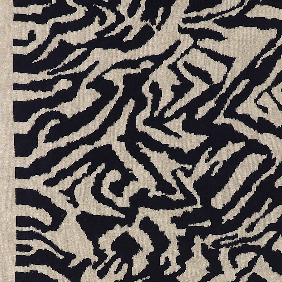 Navy blue and oatmeal animal stripe snood made from a recycled yarn blend.