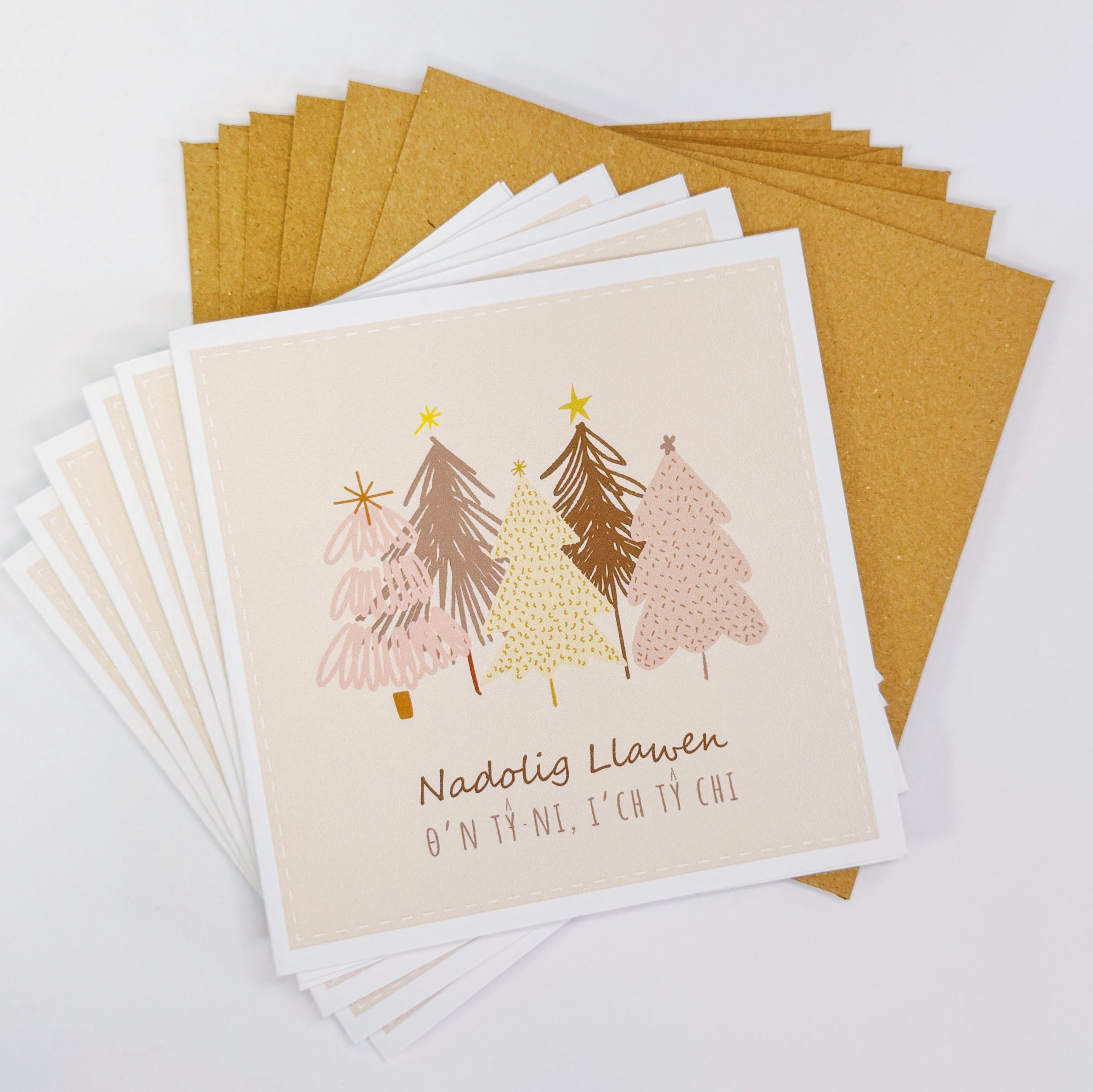 This pack of 6 Christmas cards has been designed and printed at Siop Ria and is exclusive to us.