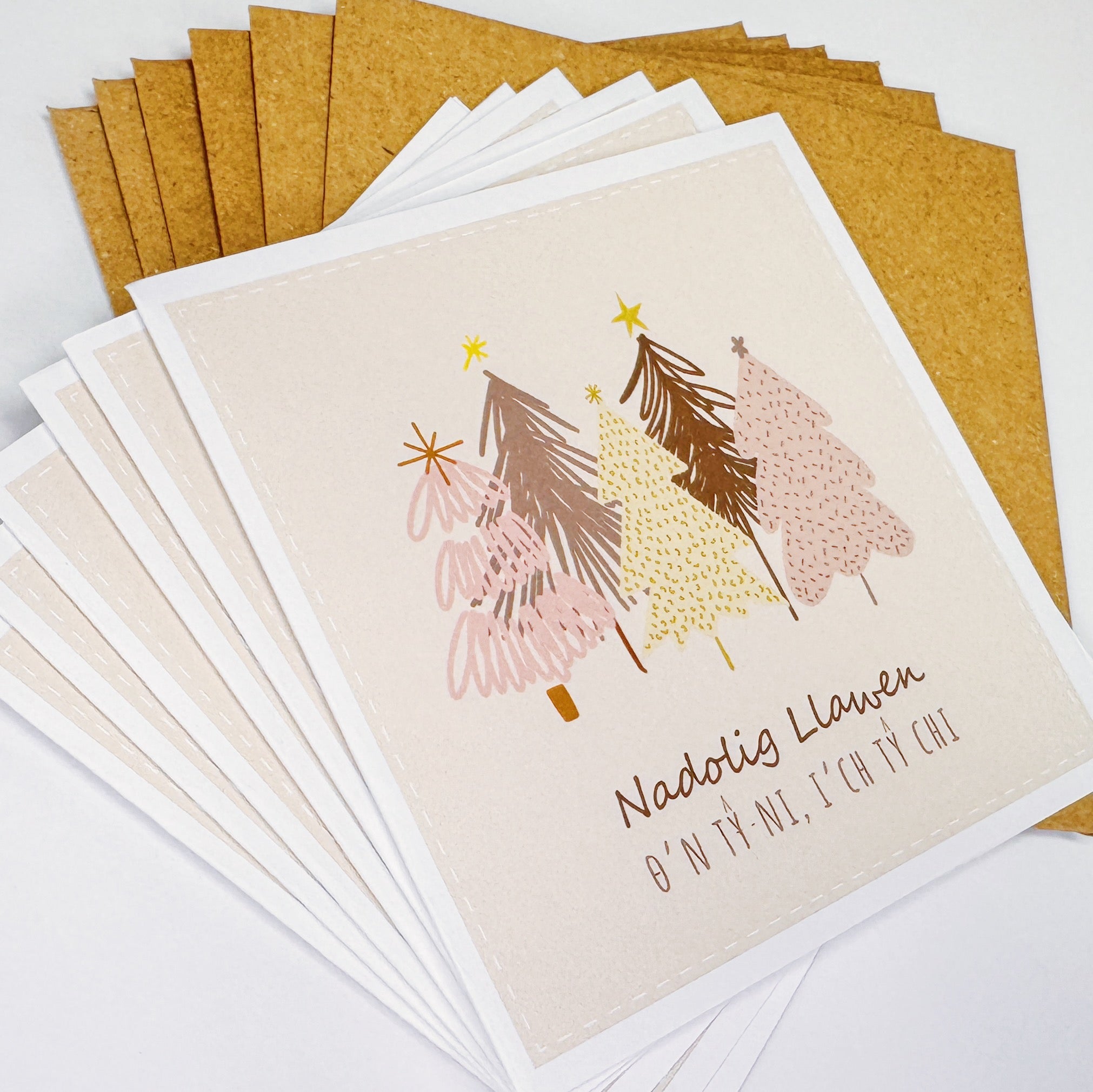 Mae'r pecyn o 6 cerdyn Nadolig yma wedi cael ei ddylunio a'u argraffu yn Siop Ria ac yn unigryw i ni.