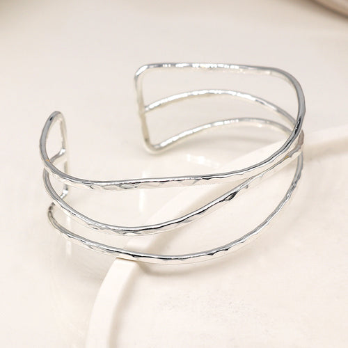 Breichled Llinyn Driphlyg | Triple Strand Bangle - Silver Plated