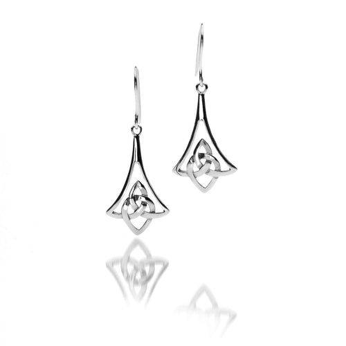 Clustdlysau Cwlwm Celtaidd Triongl Arian | Welsh Triangle Celtic Knot Silver Earrings