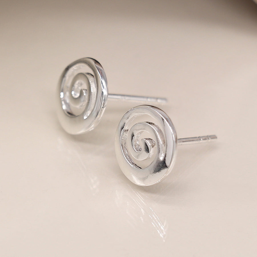 Clustdlysau Styd Arian | Sterling Silver Studs - Spiral