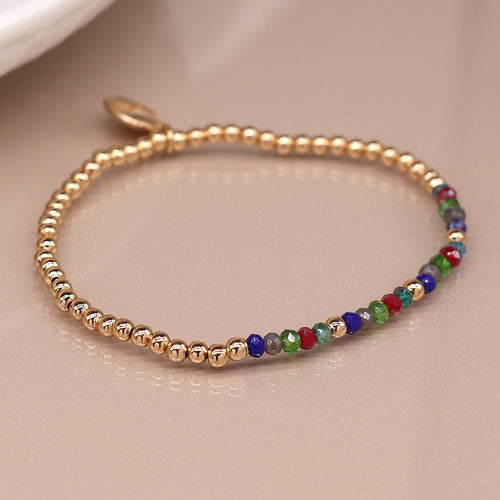 Breichled Gleiniau Aur ac Amryliw | Golden & Multi Bead Bracelet