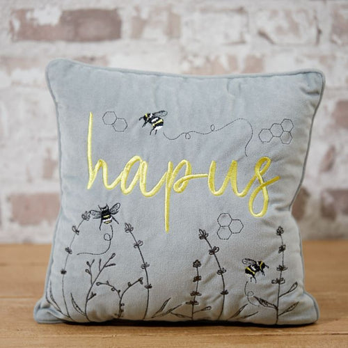 Chlustog Gwenyn a Hapus | Grey "Hapus" and Bee Cushion