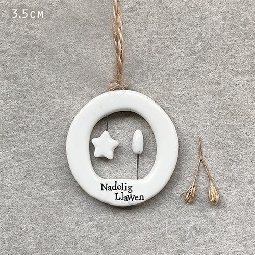 Addurn Porslen - Nadolig Llawen | East of India Porcelain Cut Out Hanger - Nadolig Llawen