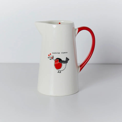 Jwg Flodau Fach - Robin Goch y Nadolig | Small Flower Jug - Welsh Christmas Robin