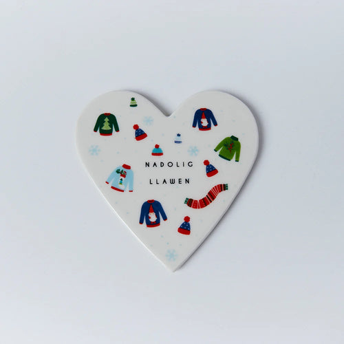 Mat Diod Serameg - Siwmperi Nadolig | Porcelain Coaster - Welsh Christmas Jumpers