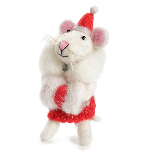 Addurn Nadolig Ffelt - Llygoden | Christmas Felt Decoration - Mouse with Muff