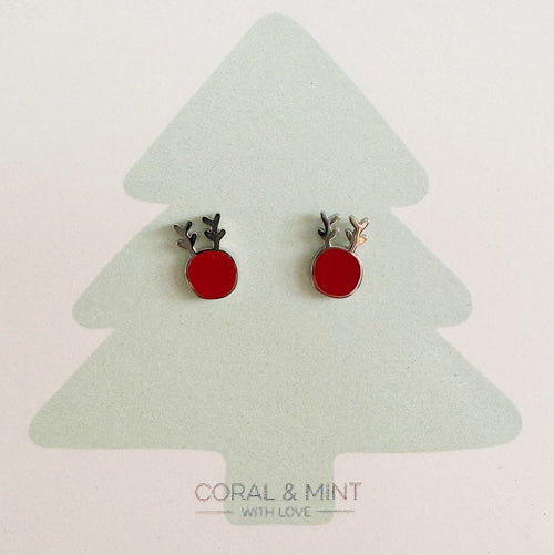Clustdlysau Styd Nadolig - Rudolff | Christmas Stud Earrings - Rudolph Reindeer
