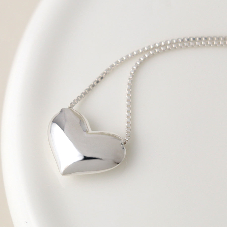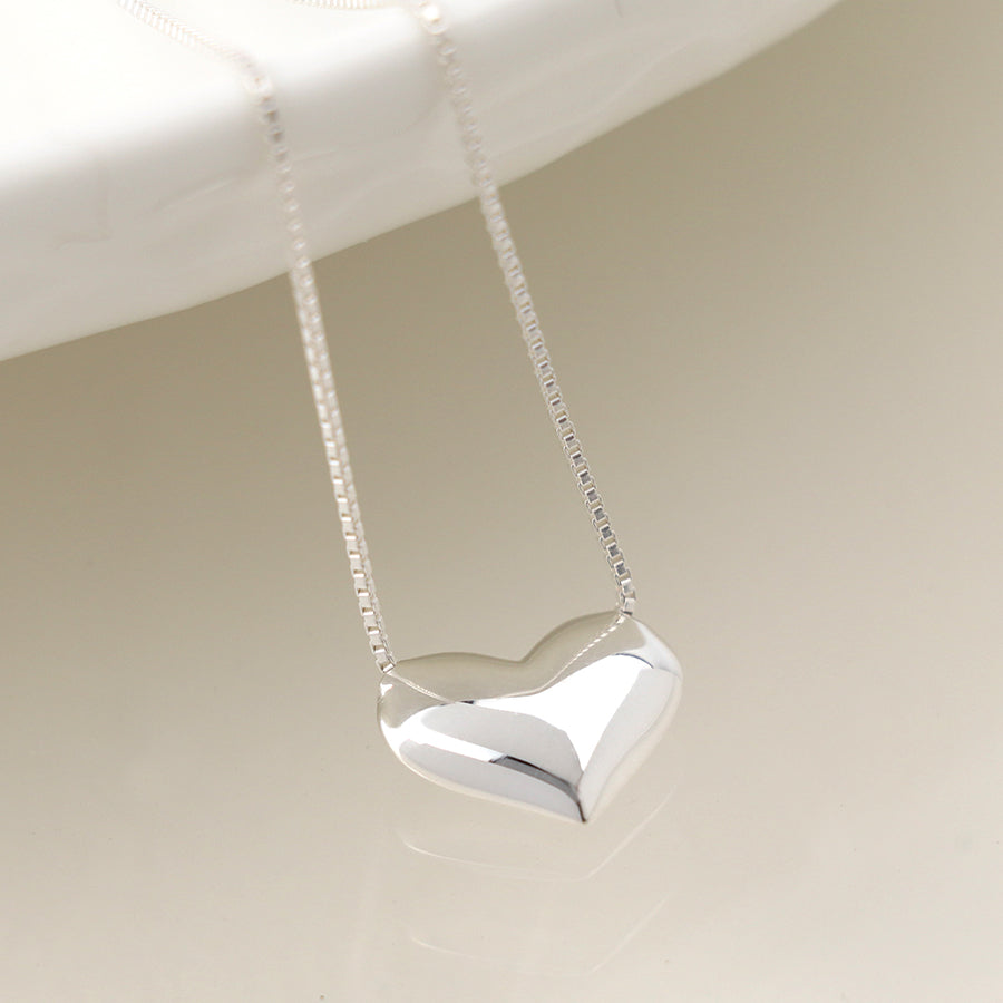 Sterling silver smooth polished heart pendant on a fine silver box chain